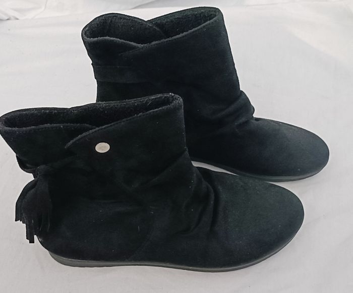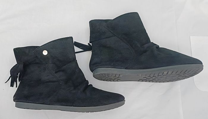 Je vends ces chaussures noires en daim pointure 39. N'hésitez pas à regarder mes autres annonces possibilité de faire des lots 🙂.