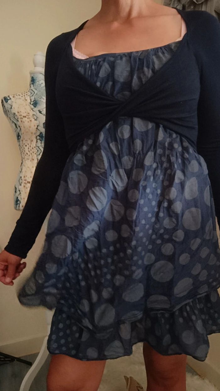 Robe mi saison manches longues façon Boléro . Taille coupé mais correspond à un 40