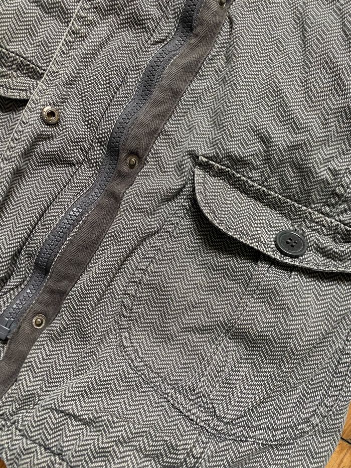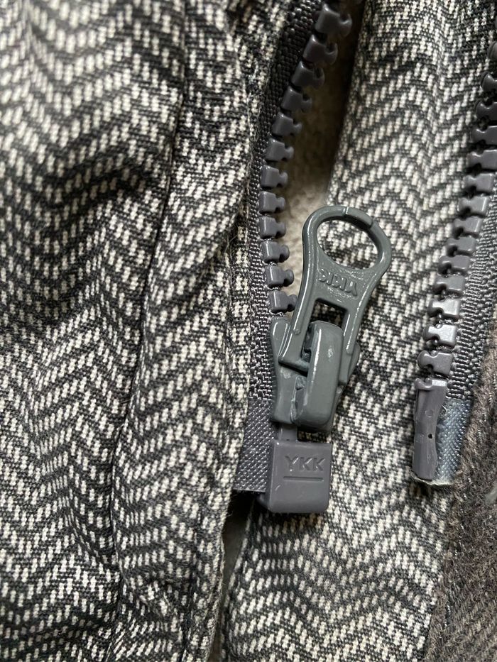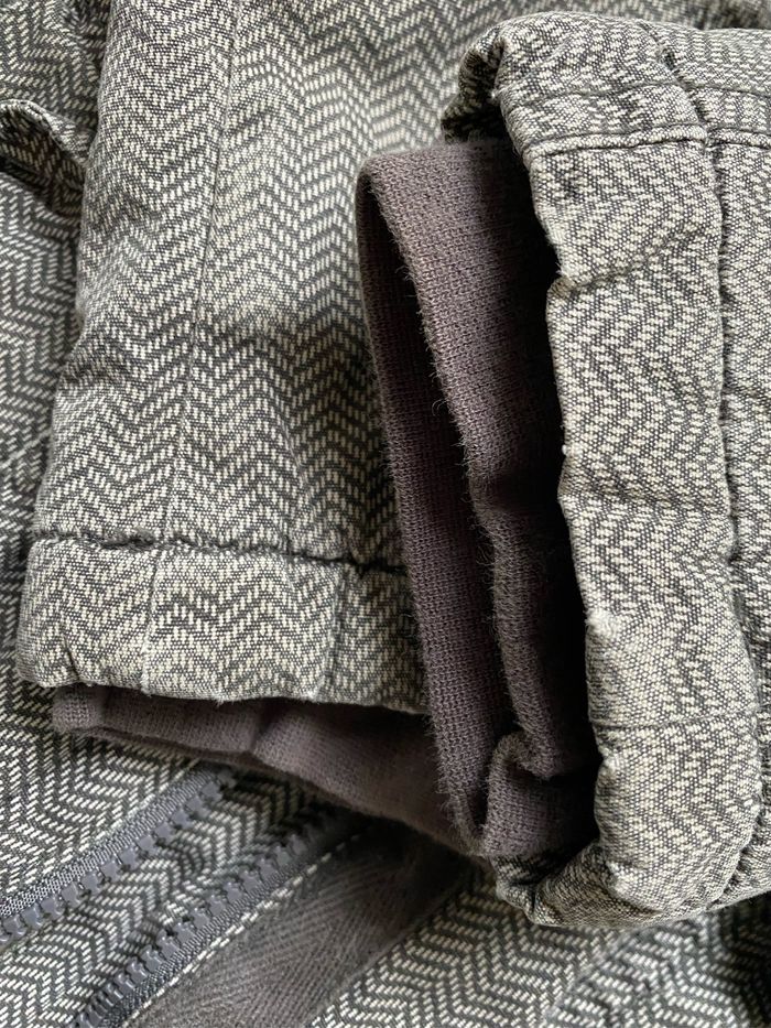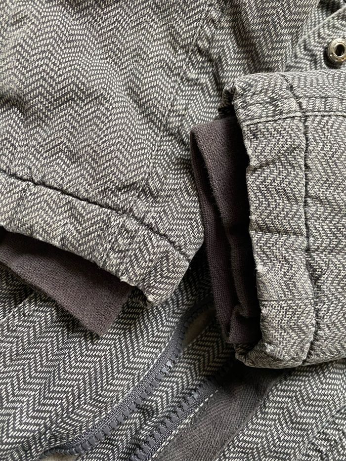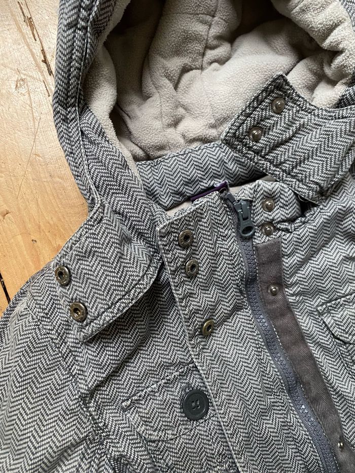 Manteau fille à capuche chevrons beige taupe gris 100% coton Doublure 100% polyester Ouate et polaire, bien chaud Quelques décolorations par endroits notamment bords des poignets , biais niveau fermeture devant Taille 7 ans 122 cm Sergent Major