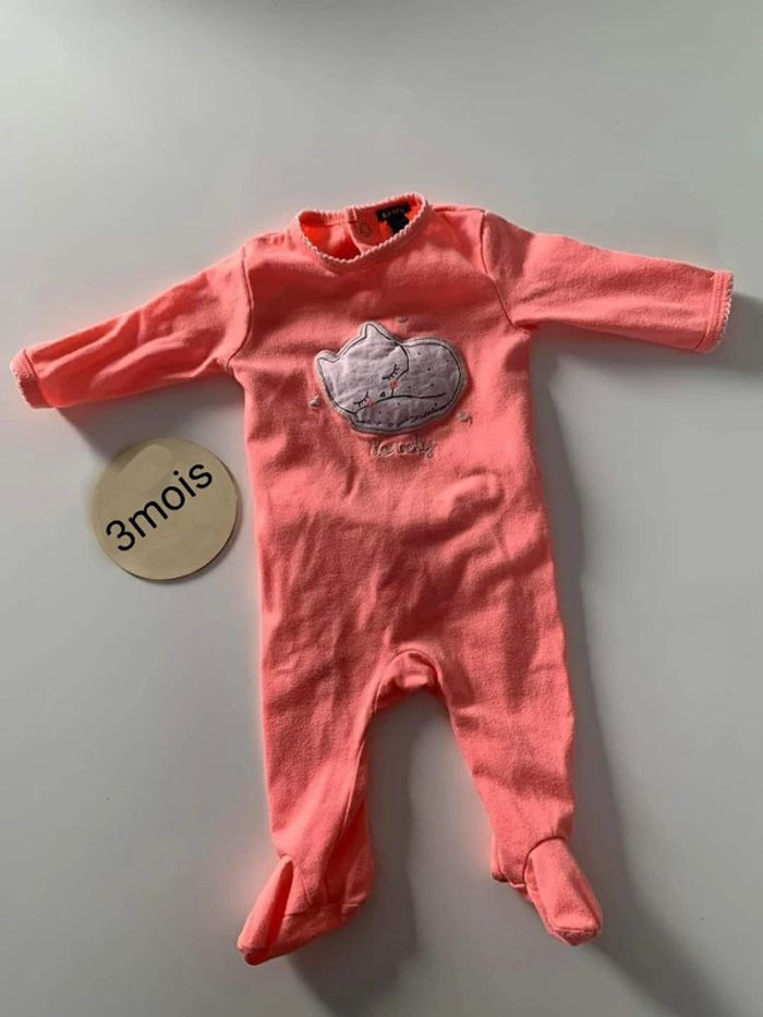Pyjama corail avec un chat dessus bon état mais ta he a la jambe Taille 3 mois kiabi #ludie8635_3moisfille
