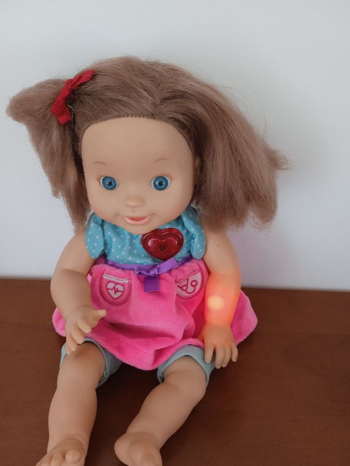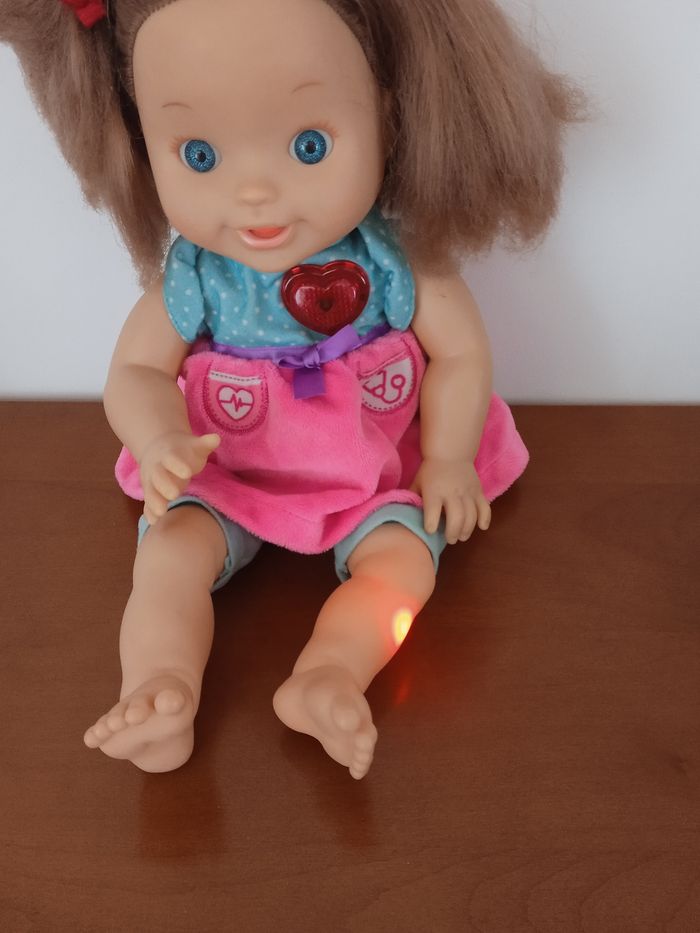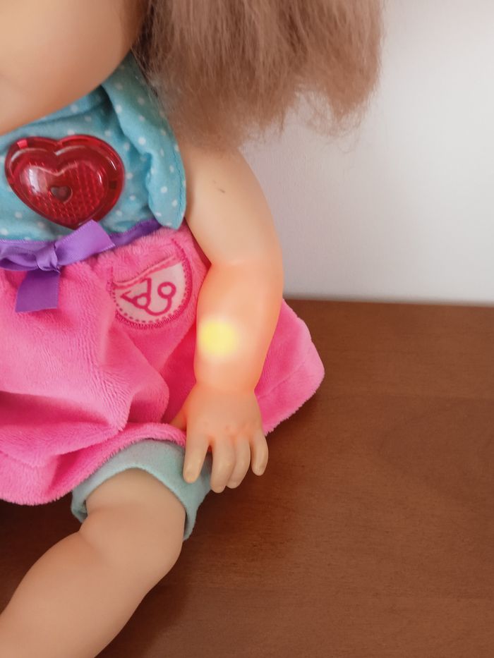 Quand on place le stéthoscope sur son cœur il s'illumine et on entend les battements de cœur.