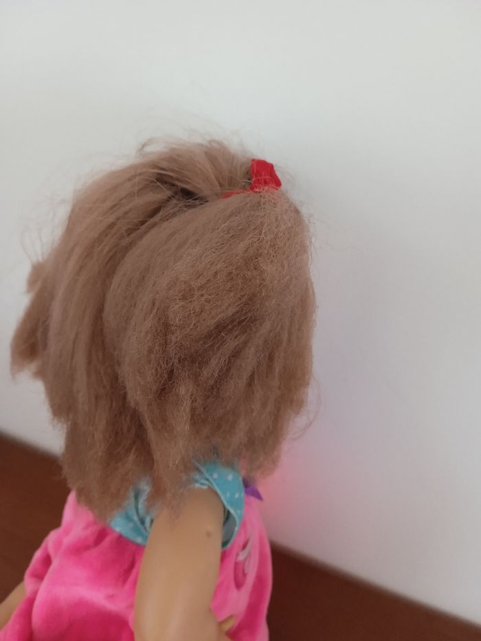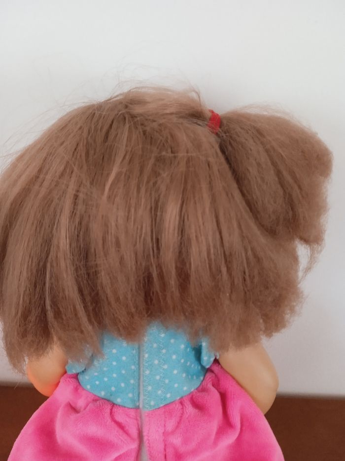 Les cheveux ont étaient coiffés donc la chevelure n'est plus lisse (voir photo). La poupée est en très bon état et les cheveux bon état.