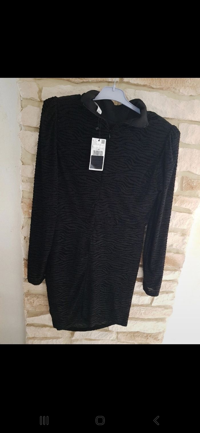 Robe neuve à manches longues. Avec épaulettes. Fermeture éclair à l avant, plissée sur un côté . Avec paillettes