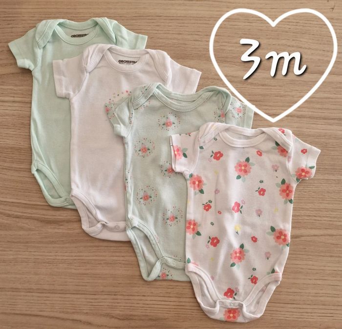 #troismoisfille_gethsemani Lot de 4 bodies MC Orchestra très peu porté ⚠️ un petit accroc sur un cf photo Tout mon dressing est trié par # dans "à propos" ❤️J ai d autres articles fille en 3mois❤️ Réduction sur les lots activée N'hésitez pas à me suivre : je vais ajouter régulièrement beaucoup d'articles bébé fille et garçon (petit bateau, jacadi, sergent major, tape à l'oeil, okaidi etc).