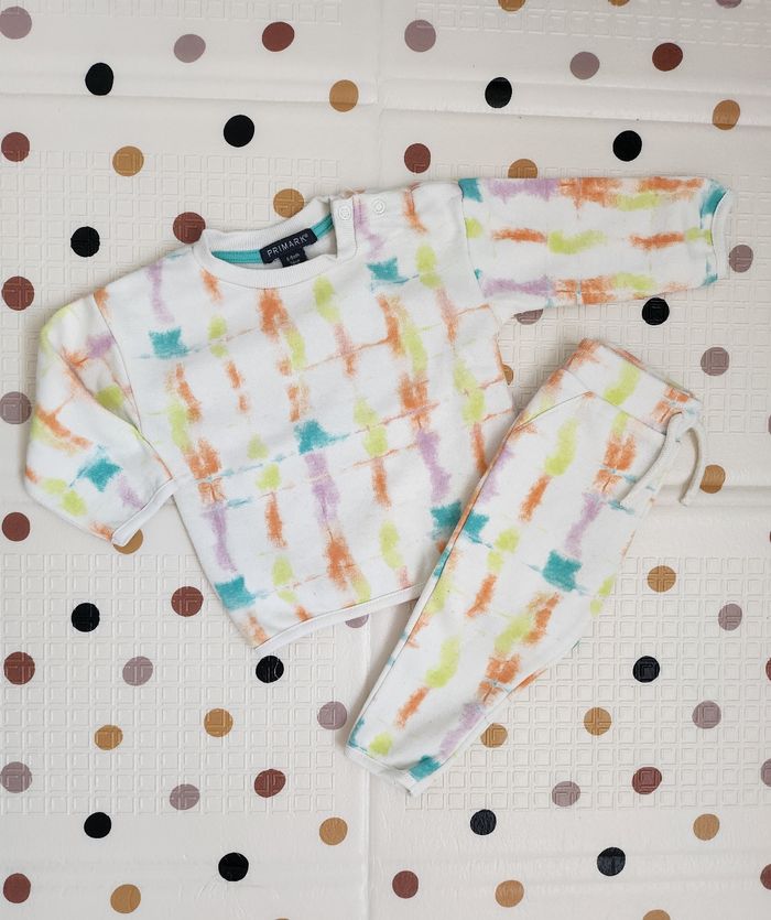 Très bel ensemble avec de très belles couleurs En très bon état, très peu porté. Taille 6-9 mois (74 cm)