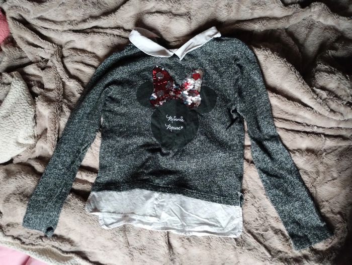 Haut Minnie : un pull fin avec bouts de chemise Ornée de sequins Taille 10 ans #astheniefille10ans #minnie #disney