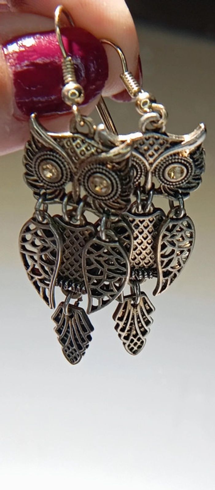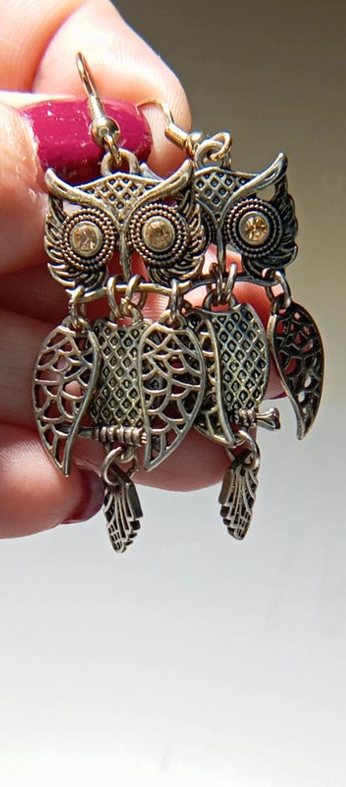 Boucles d'oreilles pendantes chouette - photo numéro 1