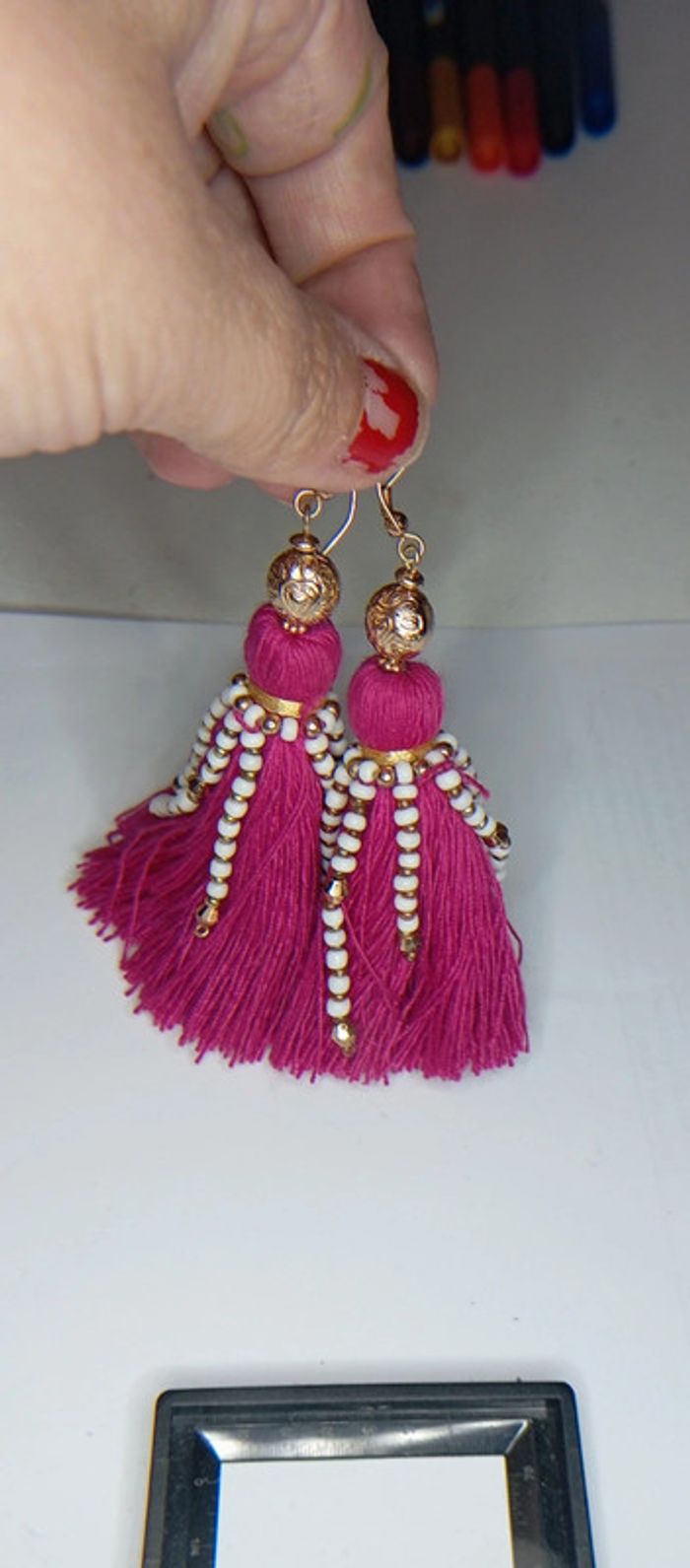 Boucles d'oreilles pompon rose - photo numéro 3