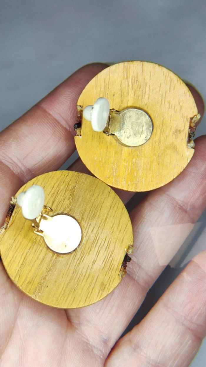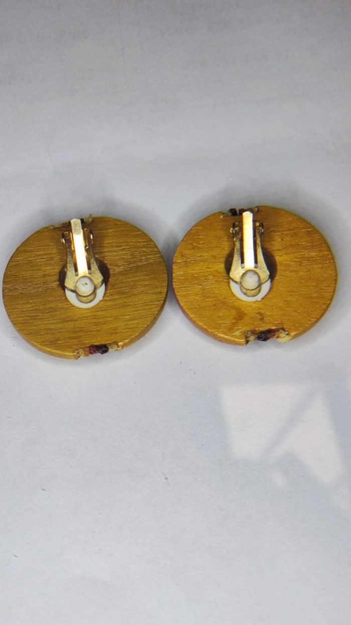 Clips d'oreilles vintage en bois
