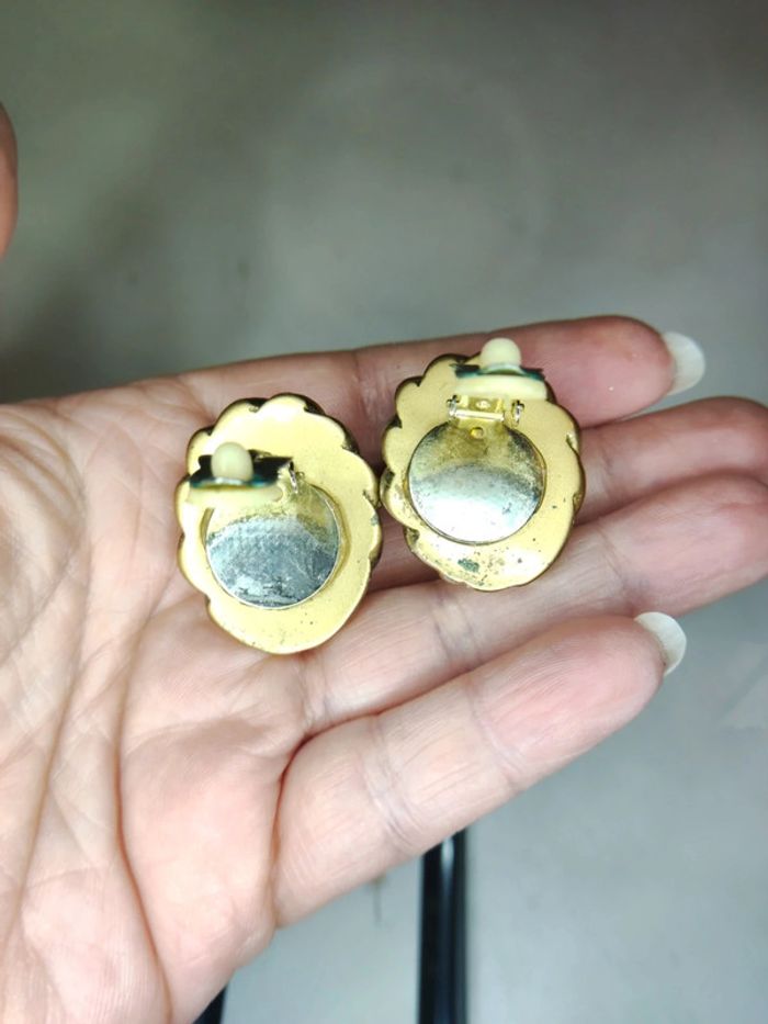 Clips d'oreilles vintage vert - photo numéro 3