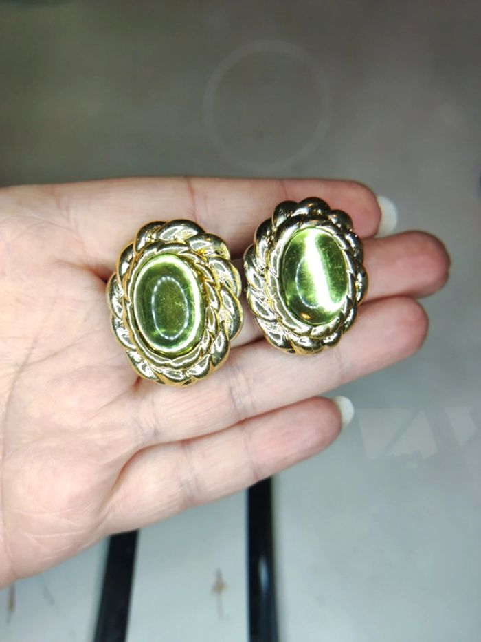 Clips d'oreilles vintage vert - photo numéro 1
