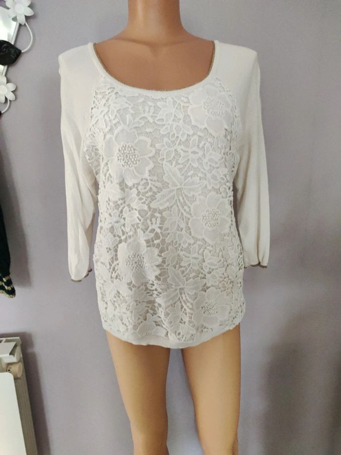 Bon état couleur blanc et crème Col et manches dorés Manches 3/4 #baronne38 #baronnenafnaf #baronnedentelle