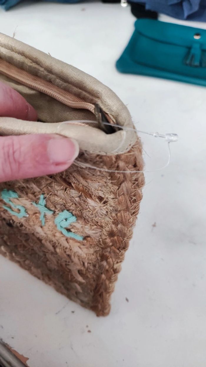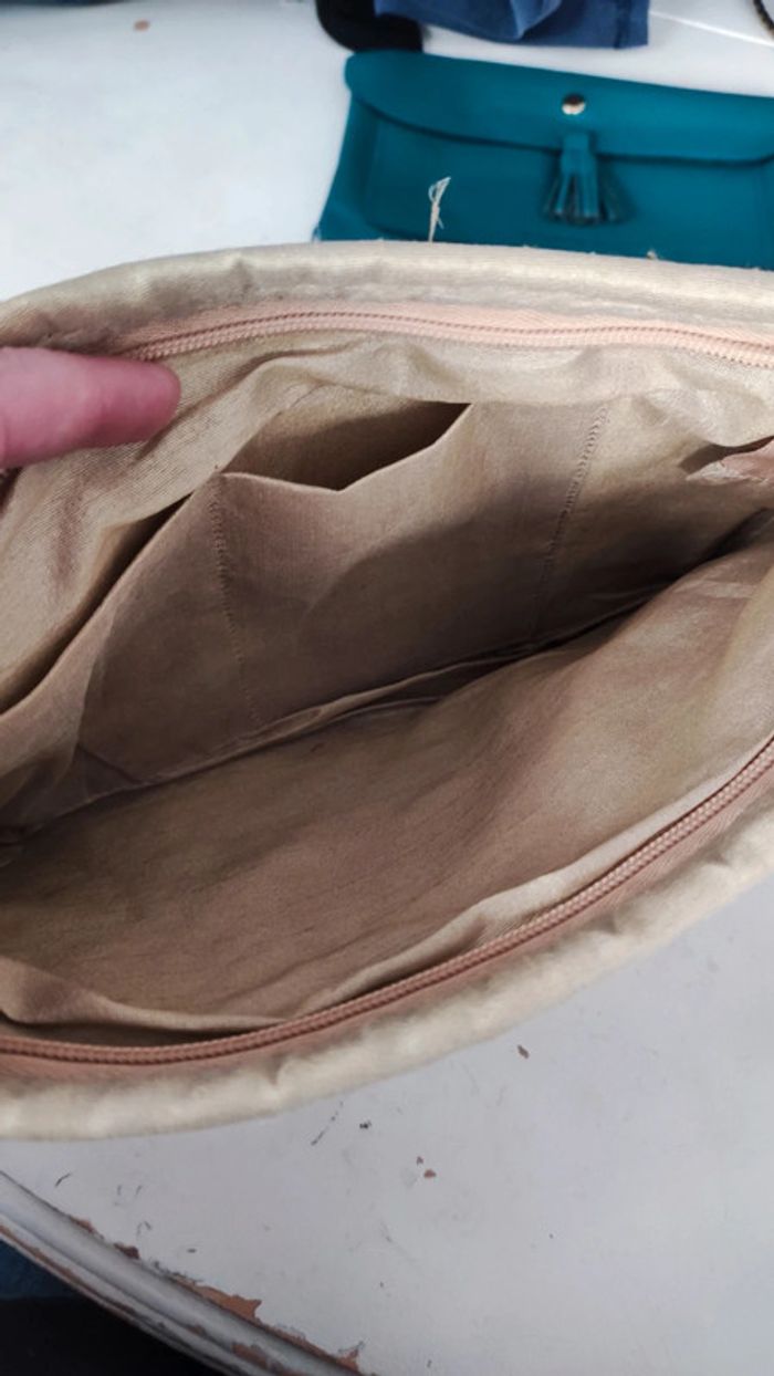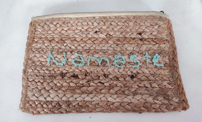 Jamais servie >Dimensions 28x19cm >Brodée namasté >Intérieur couleur or >100% jute >Intérieur polyester #baronnesac