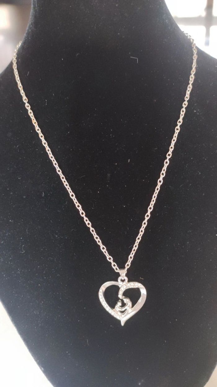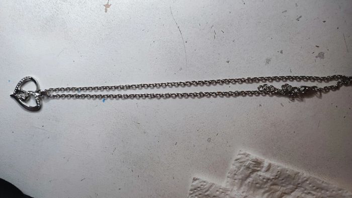 Collier fantaisie coeur avec strass très lumineux très bon état Longueur 23 cm réglable Pas de poinçon visible #baronnecollier