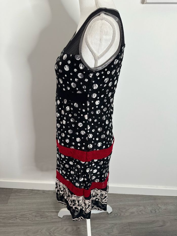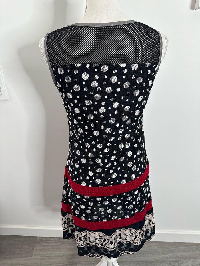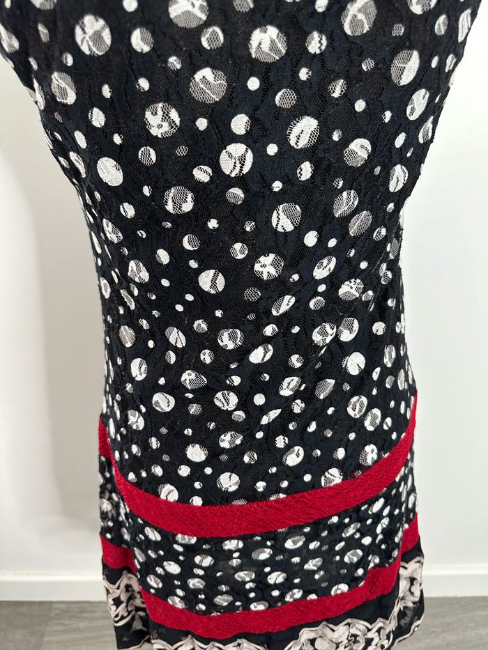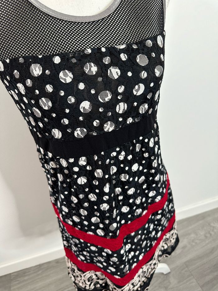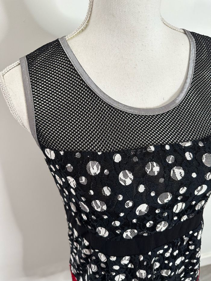 Robe - Excellent état - Taille 36 équivalent S - Noire blanche et rouge - Sans manches - Dentelle et résille - Imprimés pois - Vintage, années 90’ - Doublure intérieure - Plus d’étiquette de taille ni de matière