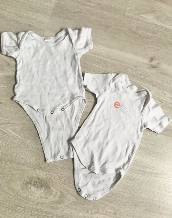 2 bodies blancs à manches courtes 3 mois - photo numéro 1