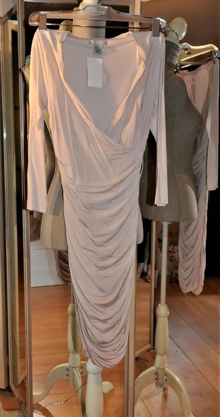 H&M robe habillée rose nude t.34/XS, Neuve avec étiquette - photo numéro 2