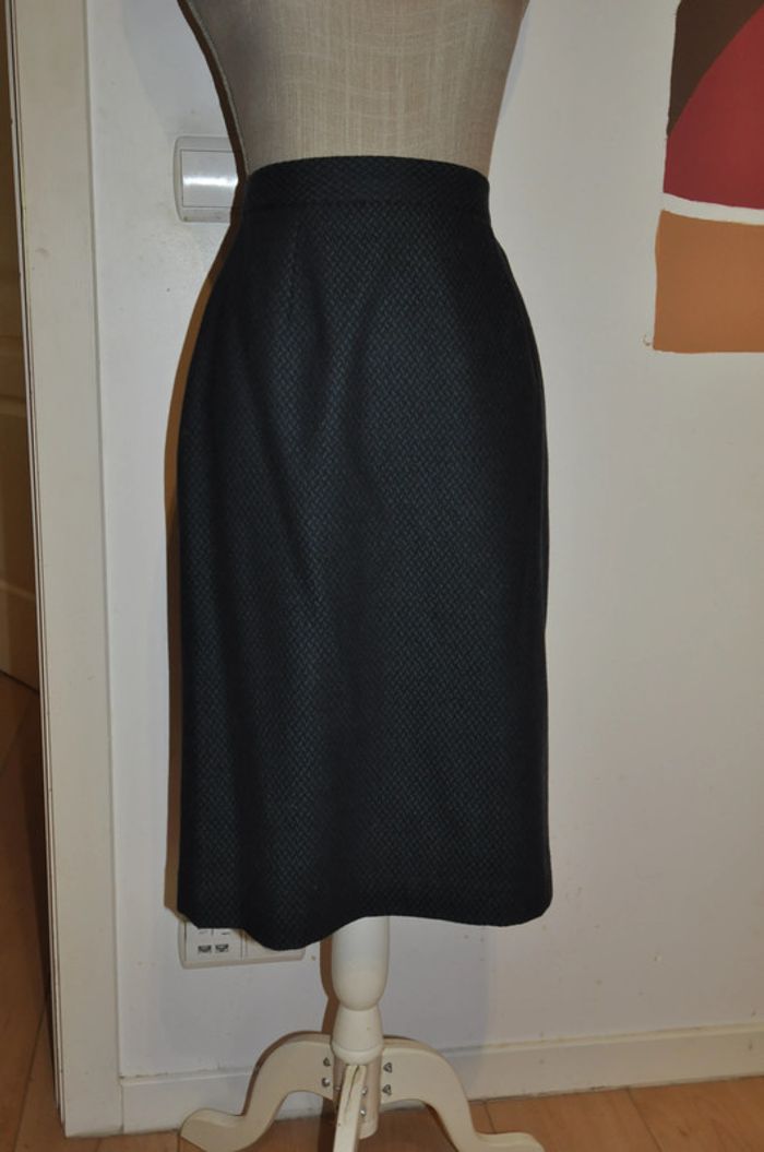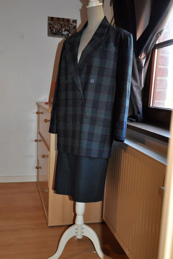 Jupe midi taille haute en tweed à chevrons vert foncé, longueur 86cm Blazer droit avec boutonnage croisé, poches plaquées, longueur 80cm, largeur sous aisselles 53cm Neuf jamais porté #philhaefemmeS #tweed #tailleur jupe