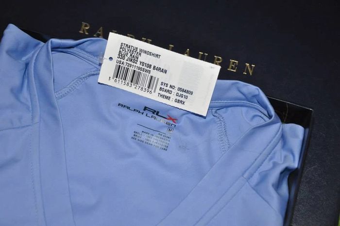 Manches longues avec poignets coupés net. Oeillets d'aération sous les aisselles. Poche zippée sur la manche gauche. "Logo RLX" sérigraphié sur l'arrière de l'épaule droite.