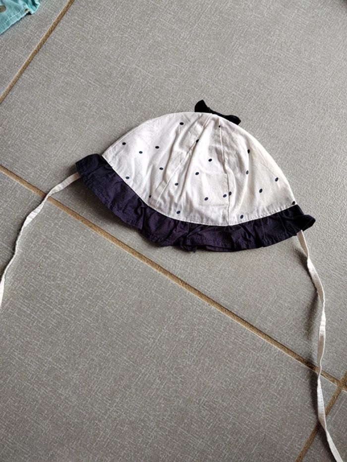 Chapeau à pois bleu Disney baby Avec nœud bleu au dessus de la tête Taille 44 cm 100% coton Peu porté Foyer non fumeur