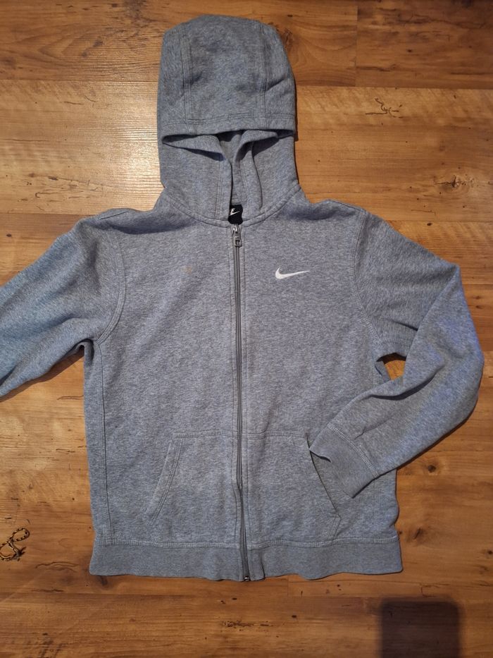 Veste zippé nike en parfait état peut porté une petite tache sur le côté gauche mais peu visible taille S adulte