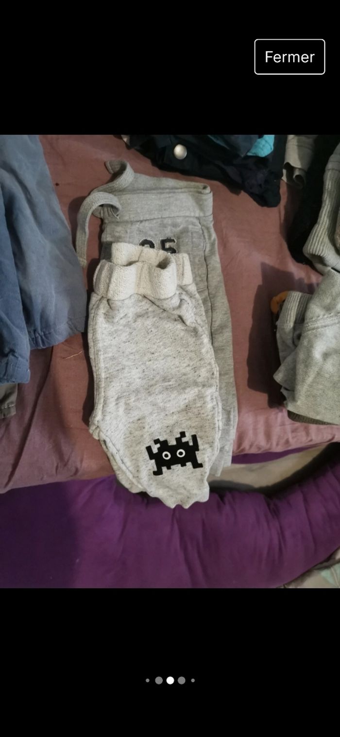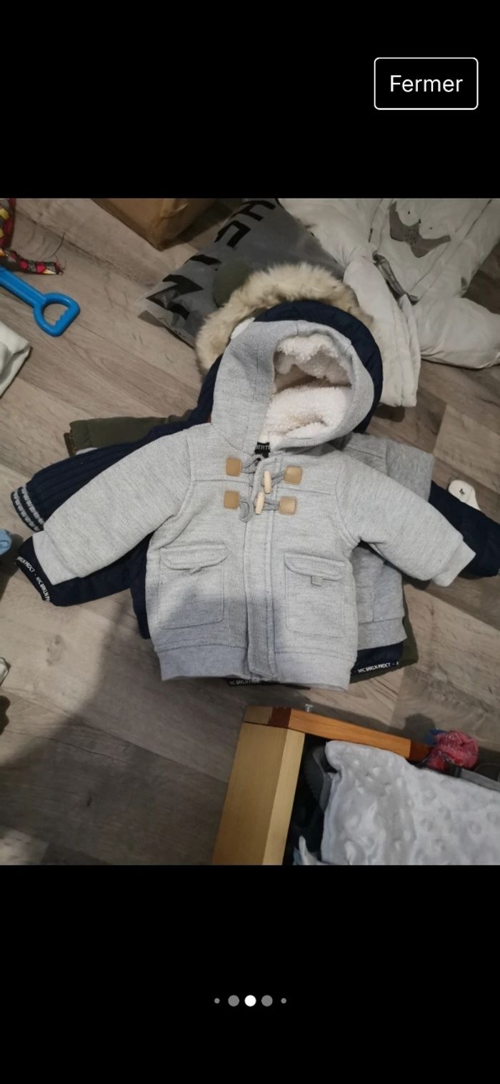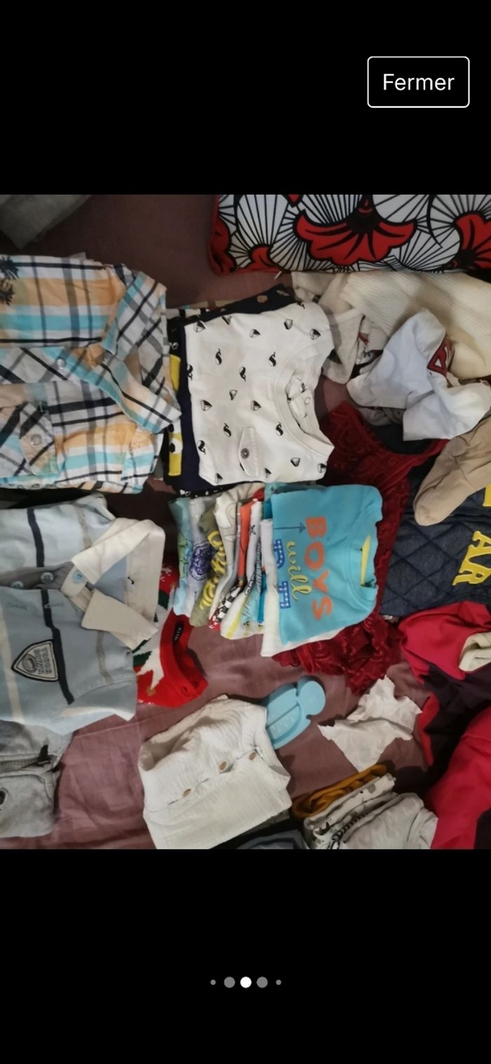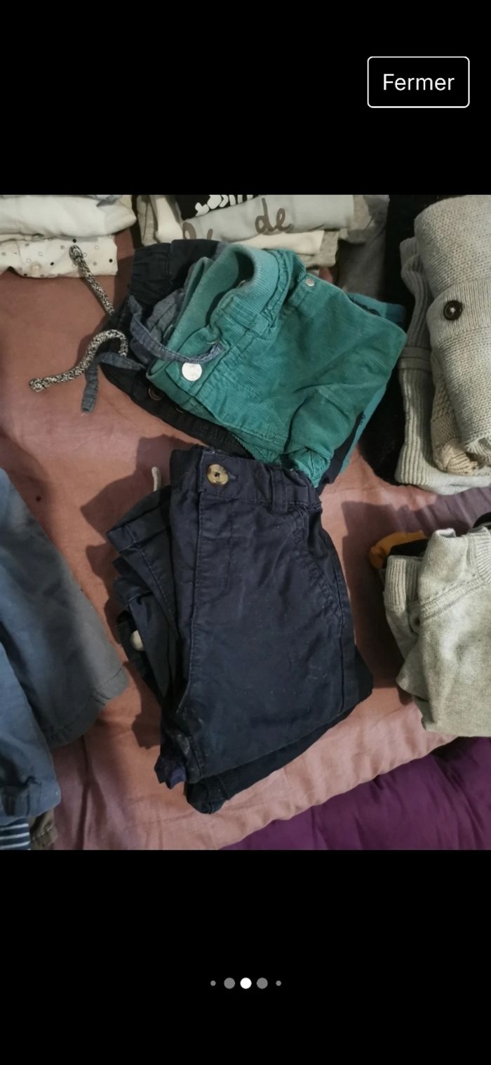 Lot de vêtements bébé de 3 à 6 mois 21 boddy manches courtes 4 pyjamas 6 mois 7 pyjamas 3 mois 2 pyjmas naissance et 2 boddies naissance 2 shorts 7 pantalons 2 joggings 9 pulls, sweats, et gilets 5 salopettes 7 tee-shirt manches longues 19 tee-shirt manches courtes 6 chemises manches courtes et manches longues 1 parka 2 vestes 1 doudoune Les boddy sont tachés mais le restes des vêtements est nickel surtout les chemises