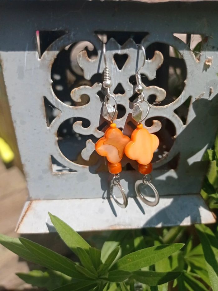 Boucles d'oreilles trèfle orange