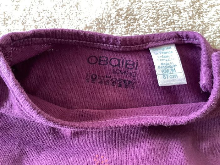 T-shirt manches longues marque Obaibi taille 6 mois violet - photo numéro 3