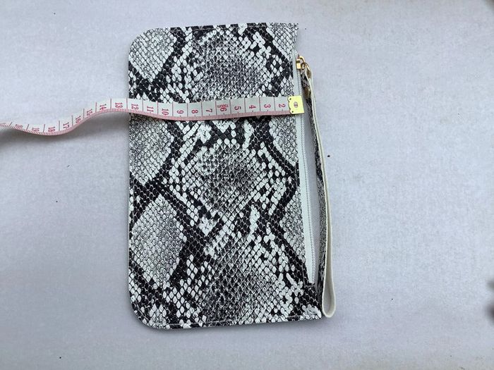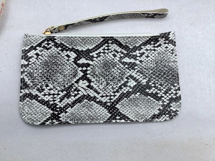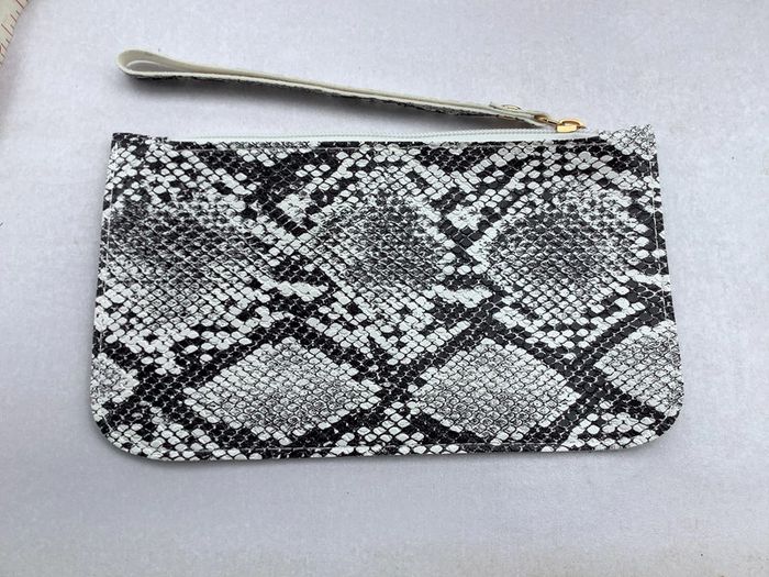 Pochette imprimée python, 21x12, avec lanière et fermeture éclair. Neuf, jamais utilisé. #AccessoiresSkrys25