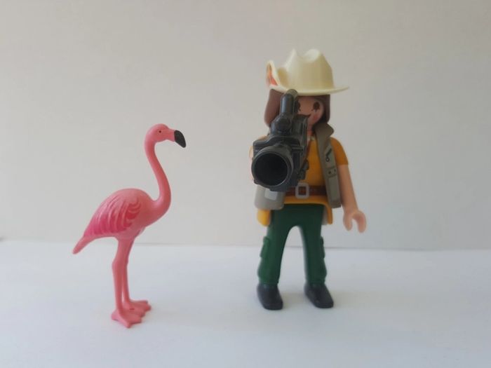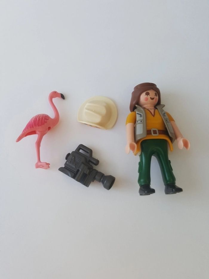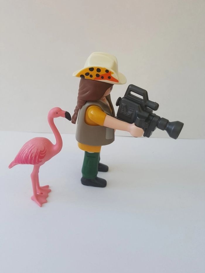 Playmobil exploratrice avec flamant rose. Collection de chez Quick. En parfait état. Monté mais jamais utilisé et complet.