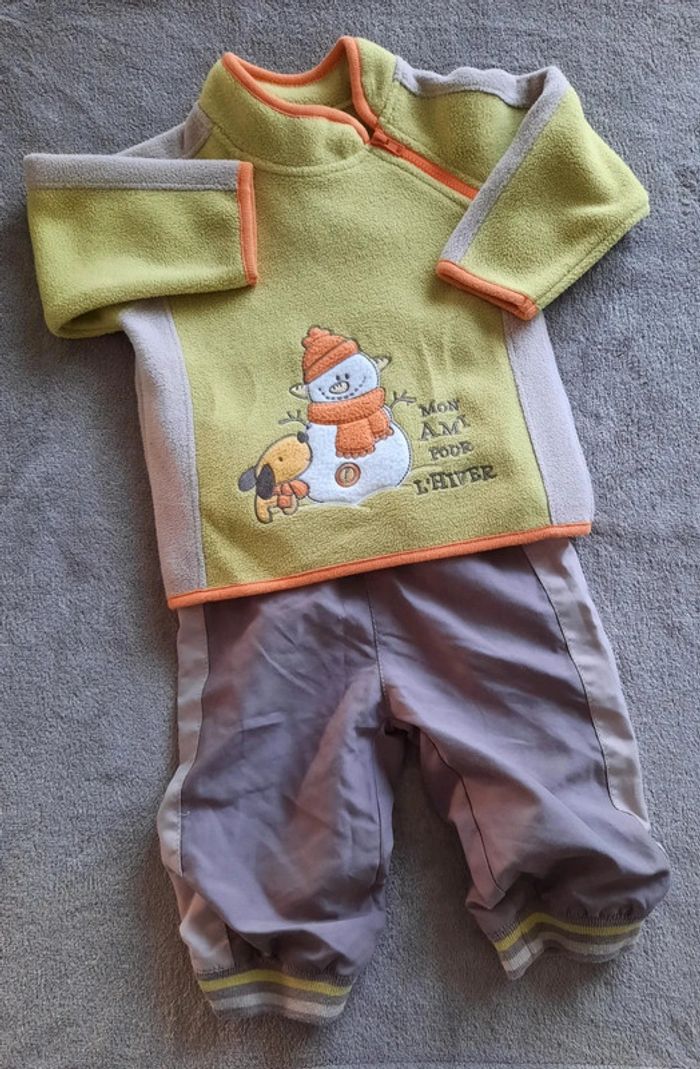 Lot : Pantalon taille élastique Pull polaire bonhomme de neige ☃️ avec zip sur le devant. Chaussettes assorties offertes #12mois_emiliestouvenel