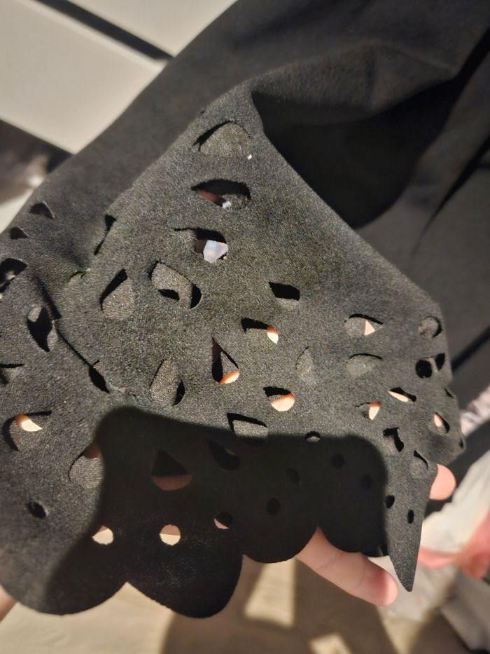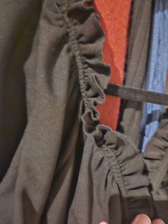 Robe noir tombante légèrement sur les épaule et finition en bas