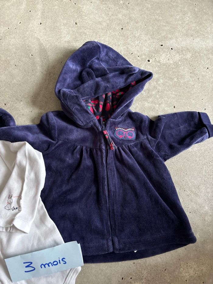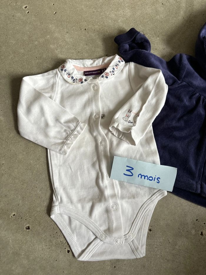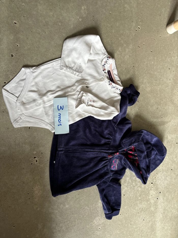 Lot comprenant un body manches longues sergent major et un sweat à capuche velours DPAM Taille 3 mois
