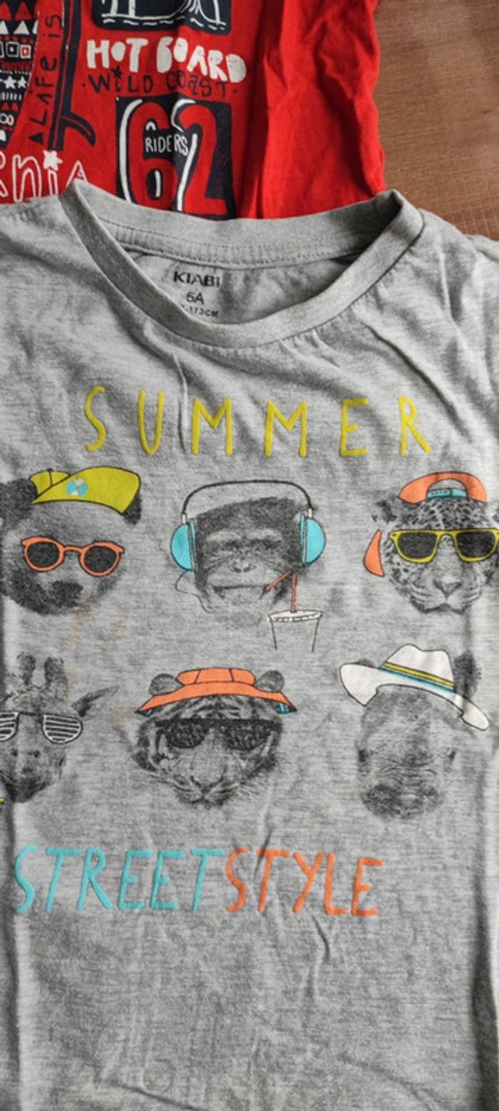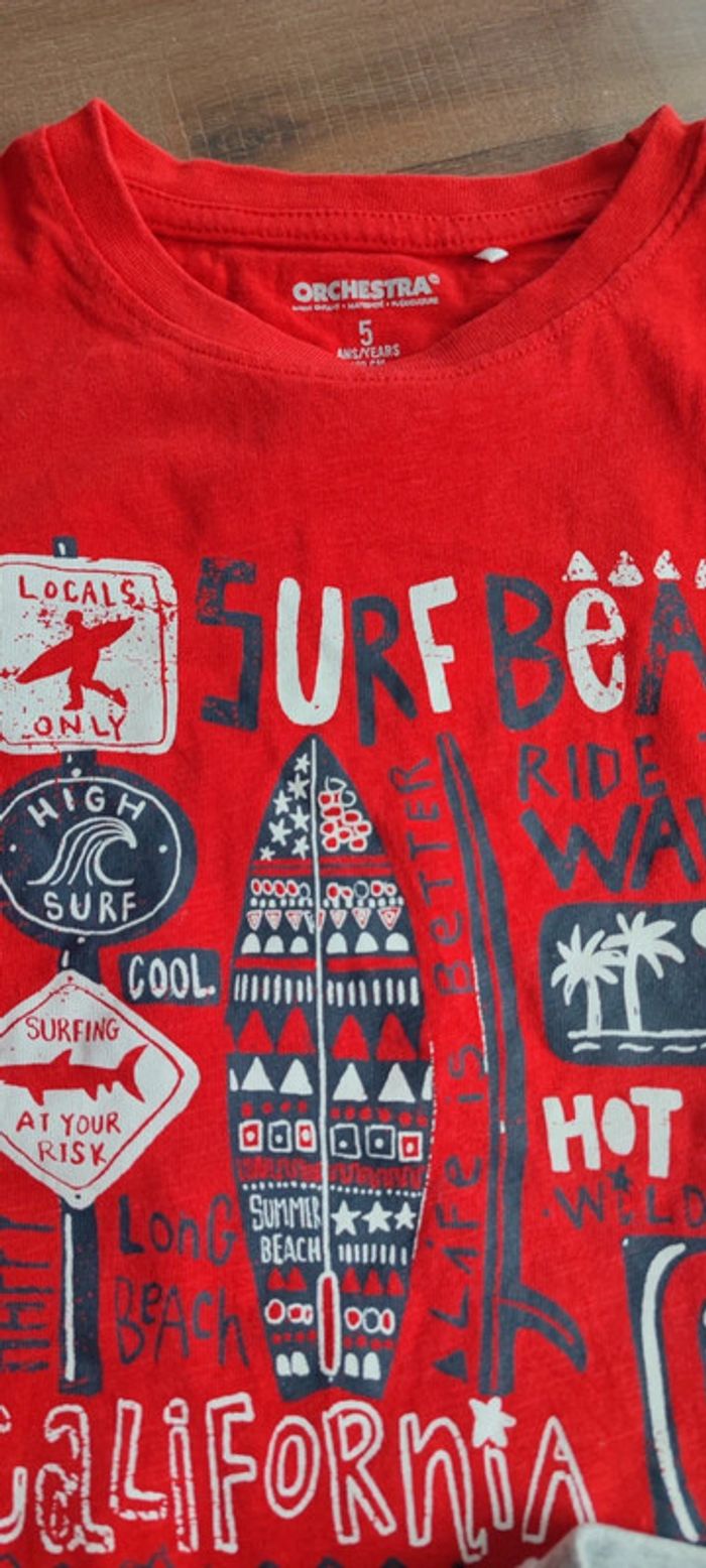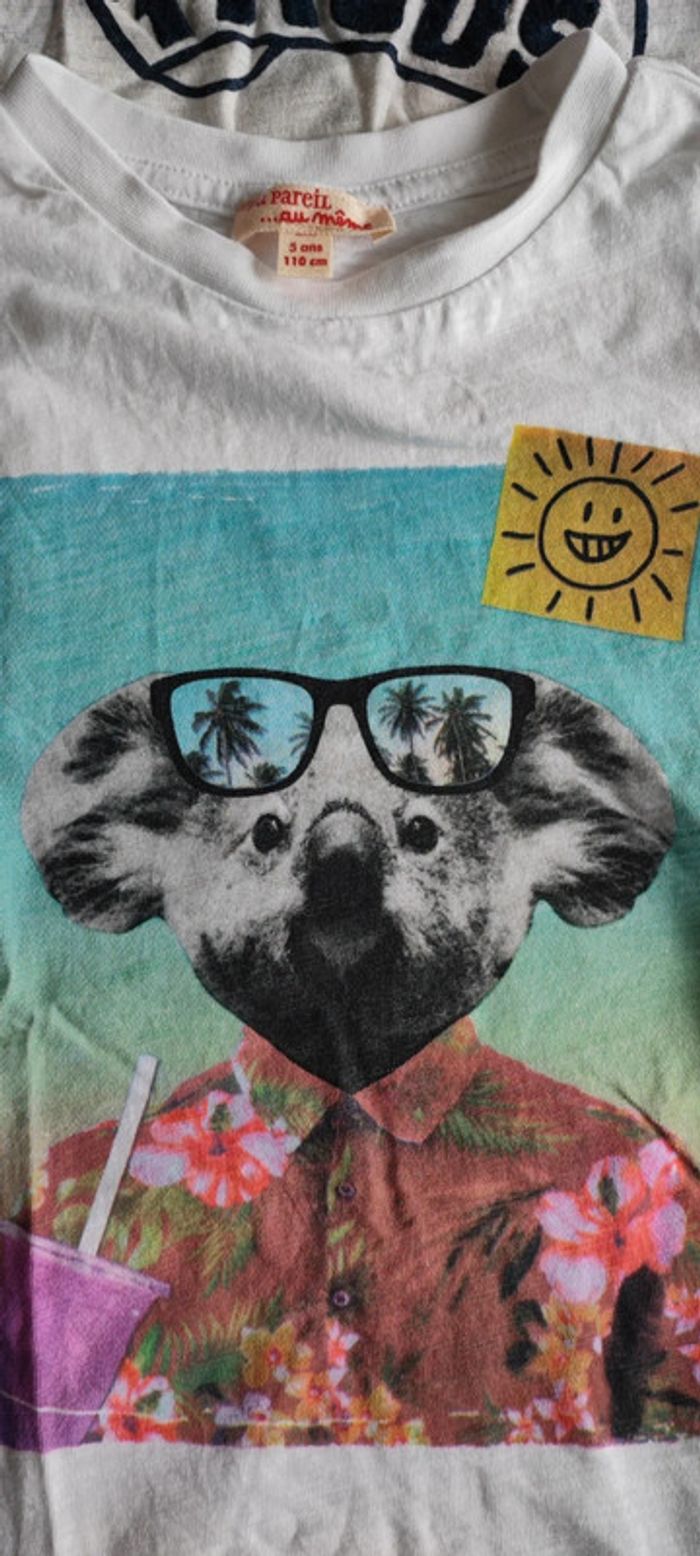 Lot de 4 tee-shirts manches courtes Rouge, gris, beige et blanc Motifs surf, animaux, tacos et koala Marque orchestra, Kiabi, tape a l'oeil et Dpam Taille 5 ans Très bon état (juste le gris qui a une tâche devant, ok sur photo) Envoi rapide #cyboulette44garcon4ans