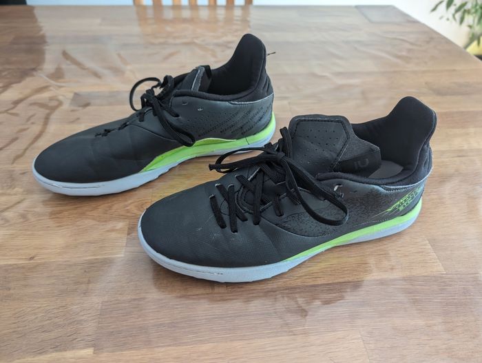Paire de chaussures/ basket / foot salle pointure 41 Kipsta Noir et jaune fluo, bon état général, mais des défauts sont présents, vendue telle que sur les photos, mérite une deuxième vie.