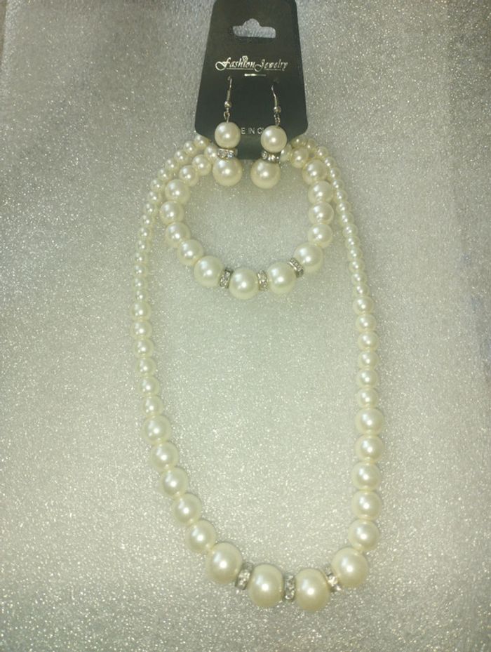 Parure 3 pièces perles, neuve , collier + bracelet+ boucles d'oreilles