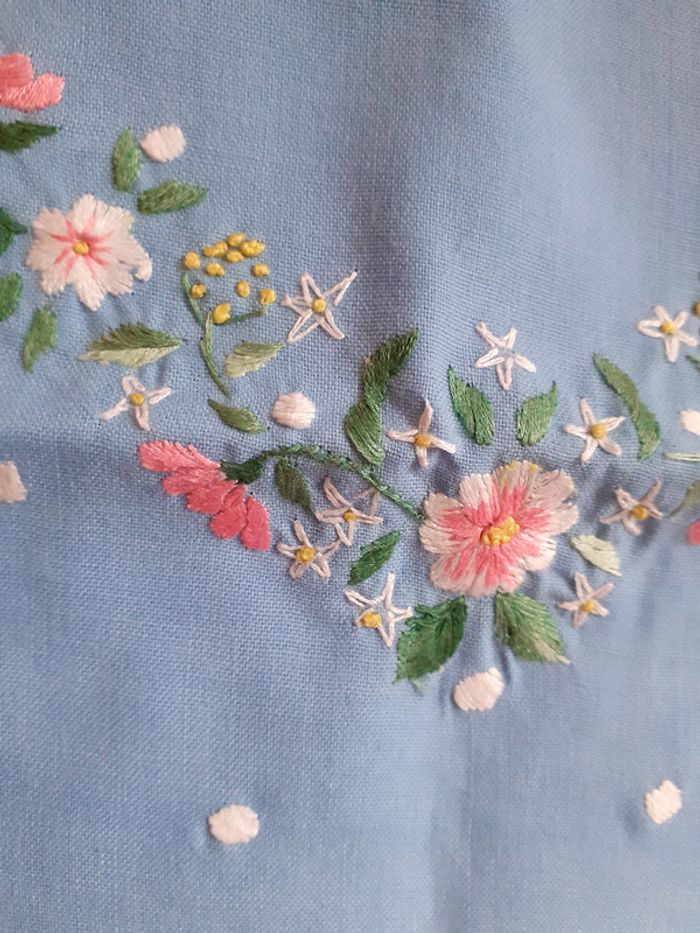 Sac fourre-tout en toile bleu clair - brodé - photo numéro 3