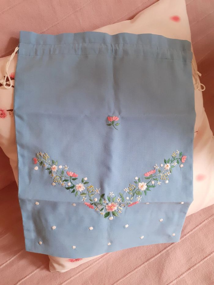 Sac fourre-tout en toile bleu clair - brodé - photo numéro 2