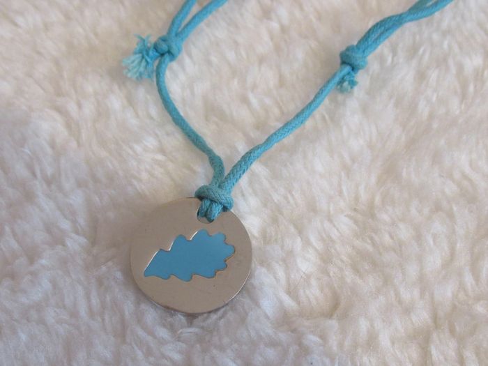 Bonjour, #bijouxetcheveuxnatsumi1004 #1euronatsumi1004 Je vends ce collier avec une plaque dont le motif représente une feuille ; qui est en bon état général. Sympa pour les beaux jours. * cordon bleu ciel, avec une plaque (Motif probable : feuille) * cordon ajustable * Diamètre : environ 2 cm N'hésitez pas à me contacter pour toutes informations complémentaires.