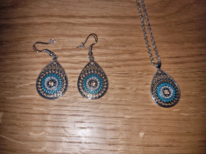Ensemble Collier et boucles d oreilles bohème turquoise - photo numéro 2