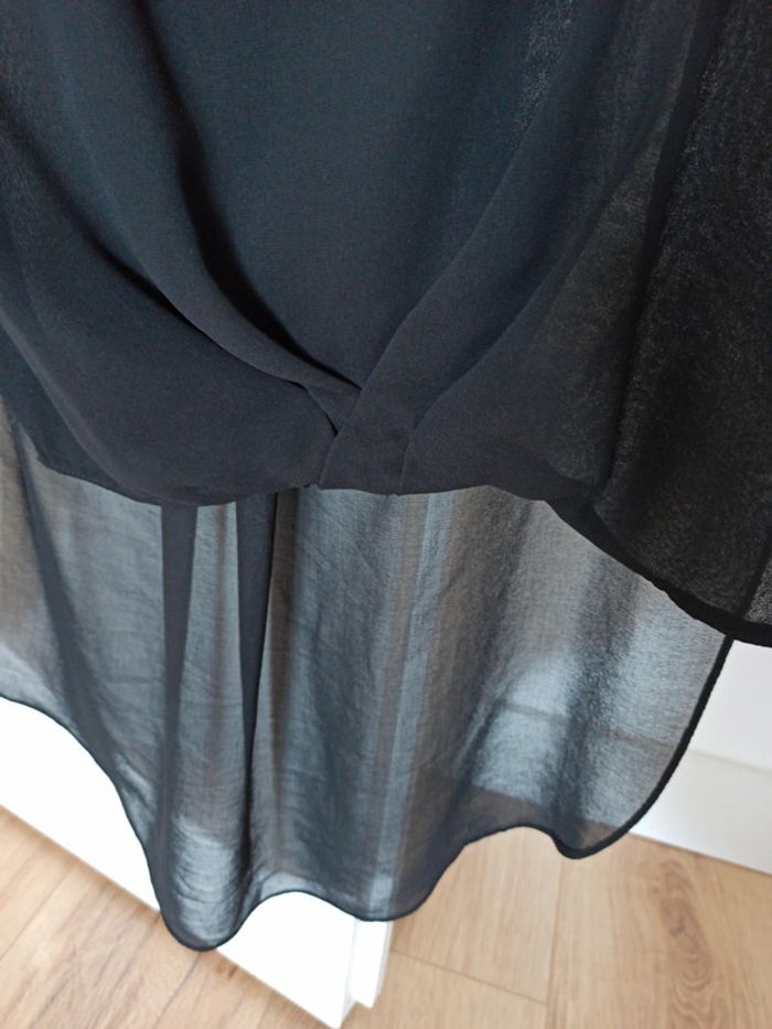 Court devant et long derrière. Transparent doublé devant et non doublé derrière, donc un peu transparent devant et bien transparent derrière.