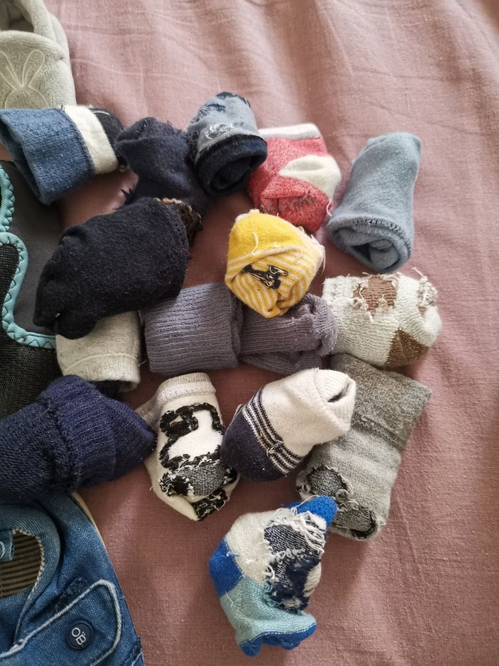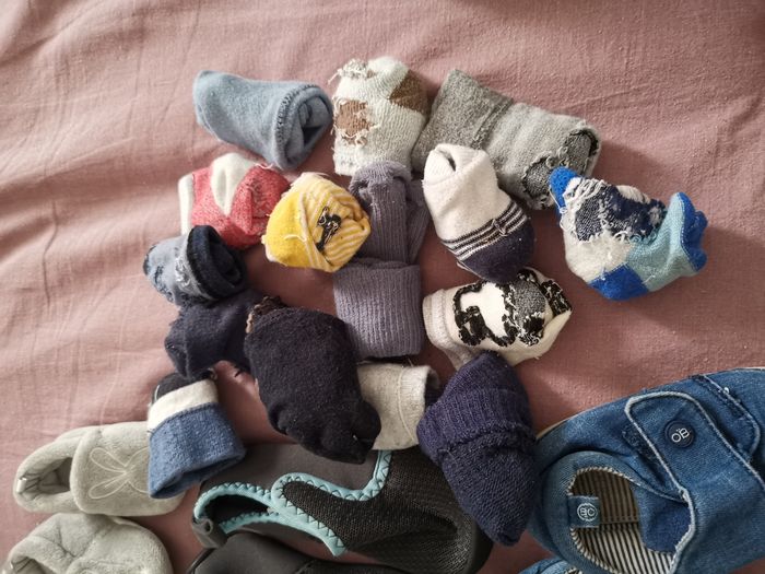 Lot de chaussures et chaussons pour garçons de la naissance à 23 Ce lot comprends 1 basket Nike en 22 (jamais portée) 3 chaussons naissances (les grises lapins jamais portés) 1ère chaussure souples décathlon en 21 Et des obaïdi bleues souple en 23. Et une dizaine de chaussettes