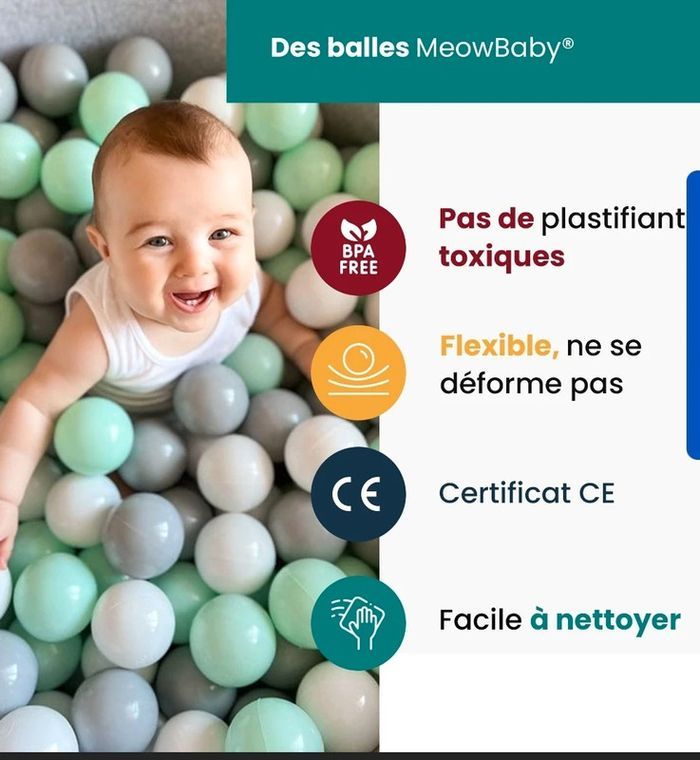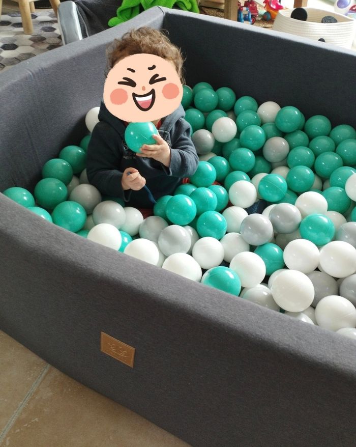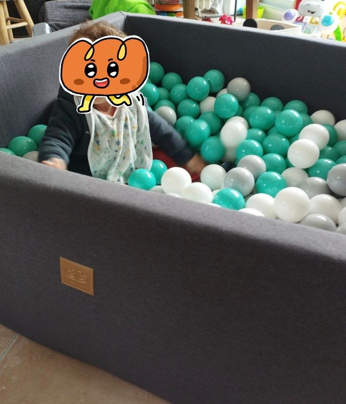 Parfait état, 110x110cm Lavable à 30°C Les couffins MeowBaby® sont cousus en Pologne, avec des tissus polonais certifiés de haute qualité. Les balles proviennent d'un fabricant national qui n'utilise que des matériaux non toxiques dans la production, sans danger pour les enfants.