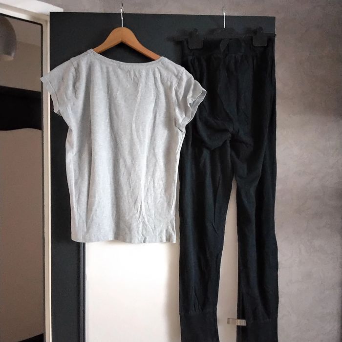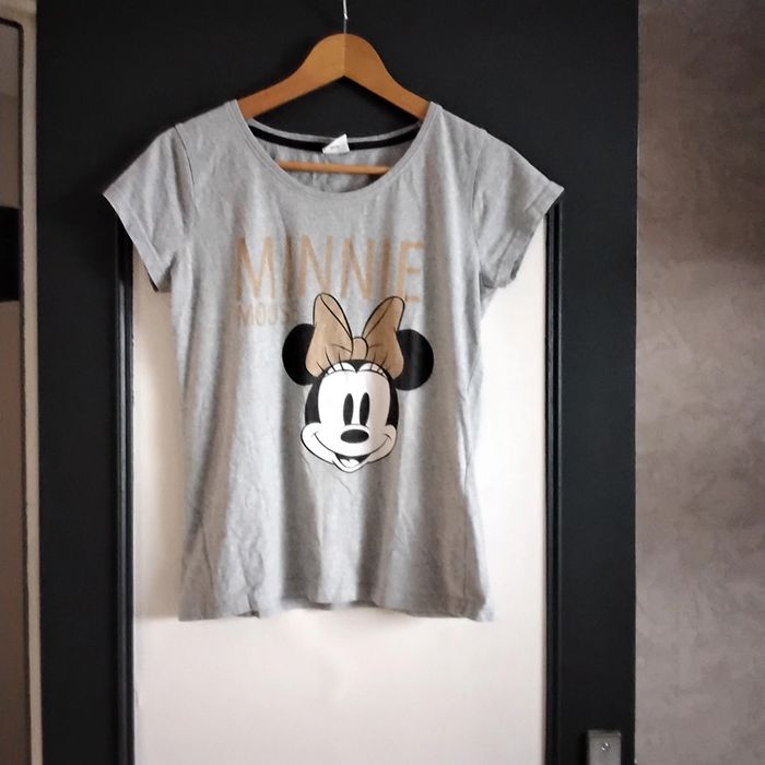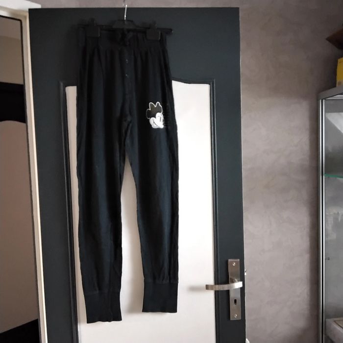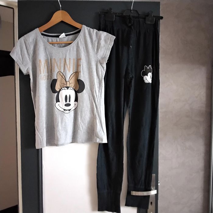 Pyjama Minnie 2 pièces fille ado S DISNEY Haut manches courtes gris 60% coton et 40% polyester Pantalon noir taille élastique 100% coton #lamadelon_fille_ado_S