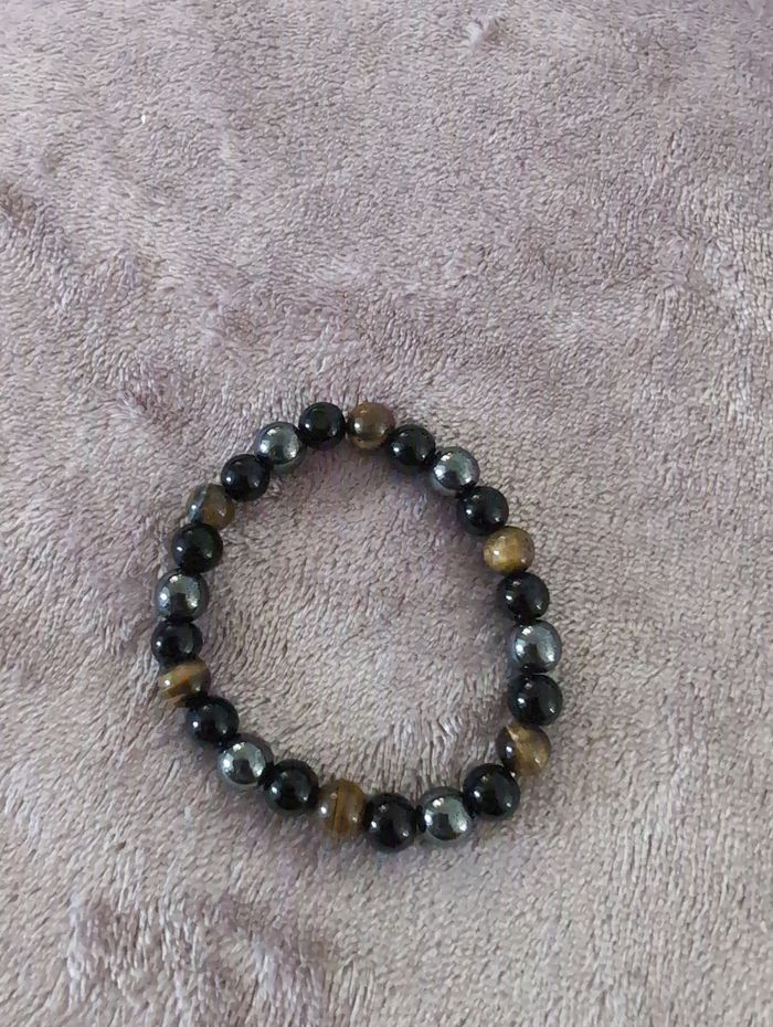 Bracelets en pierre naturelle œil de tigre hématite et obsidienne Ces trois pierres sont pour éloigner des énergies négatives et reprendre la confiance en soi