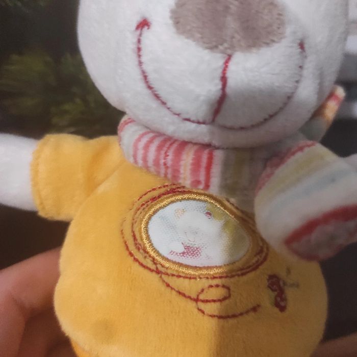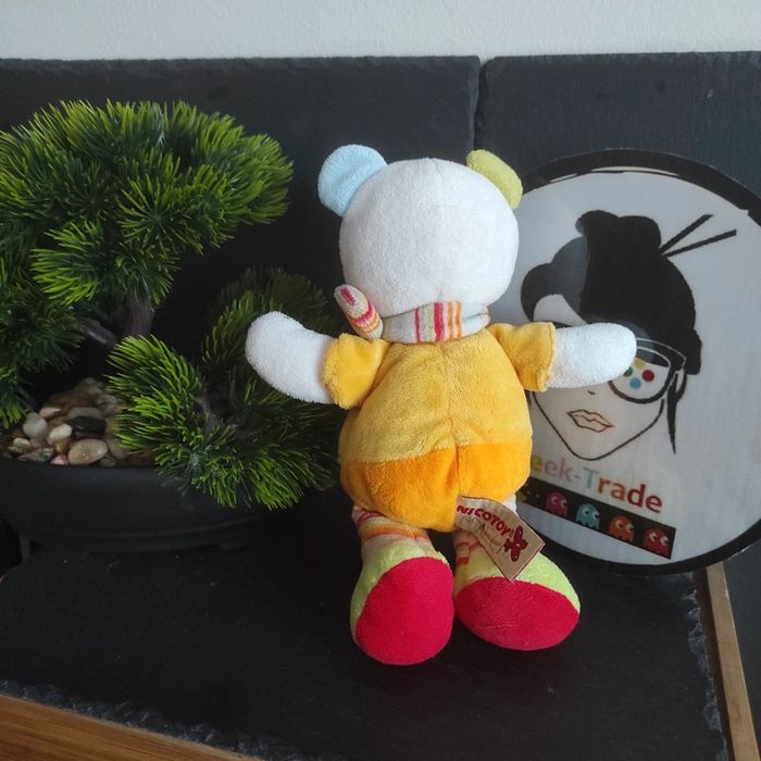 Doudou ours blanc jaune orange rouge vert rayé Nicotoy Peluche Écharpe Bel état Prénom écris sur l étiquette au bic Le portrait dans l ovale sur le ventre est estompé Afin de ne pas abîmer les doudous et de laisser le choix dans l'utilisation de la lessive les peluches ne sont pas lavées avant envoi Envoi sous 24/48 heures (pas d'envoi du samedi au lundi cependant) Description complément : #geektradenicotoy Petit nettoyage à prévoir Vous achetez ce que vous voyez les photos font entièrement partie de la description Transport : Les frais de transport comprennent les frais du transporteur ainsi que l'emballage pour protéger au mieux votre achat. Chaque achat est envoyé en format colis avec numéro de suivi Le poids du colis est de 500g finit (je ne peux pas faire moins) il peut donc y avoir plusieurs objets dans le carton si vous le souhaitez (contactez moi afinde grouper les frais de port) Référencement : #geektradedoudou #peluche #plush  #doudou #enfant #bebe