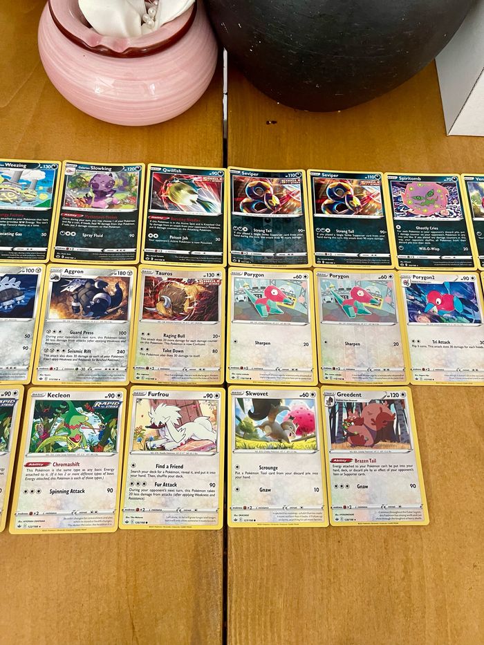 Vend une partie du set règne de glace en anglais . Le set compte 233 cartes , je vend 134 cartes du set ! Aucune doubles . Plus de 50 holographique . Les cartes sont neuves . Prix : 50€ . Si vous êtes intéressé dite moi je passe par une autre plate-forme . Envoie rapide et soigner 🔥