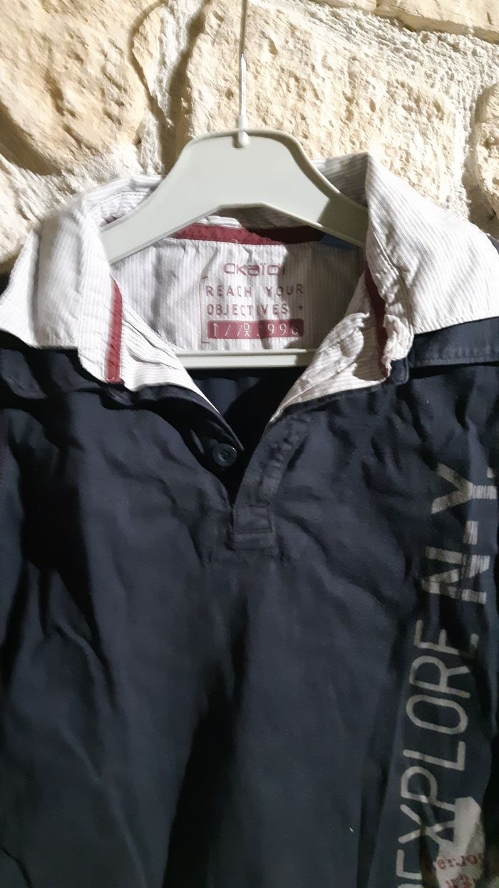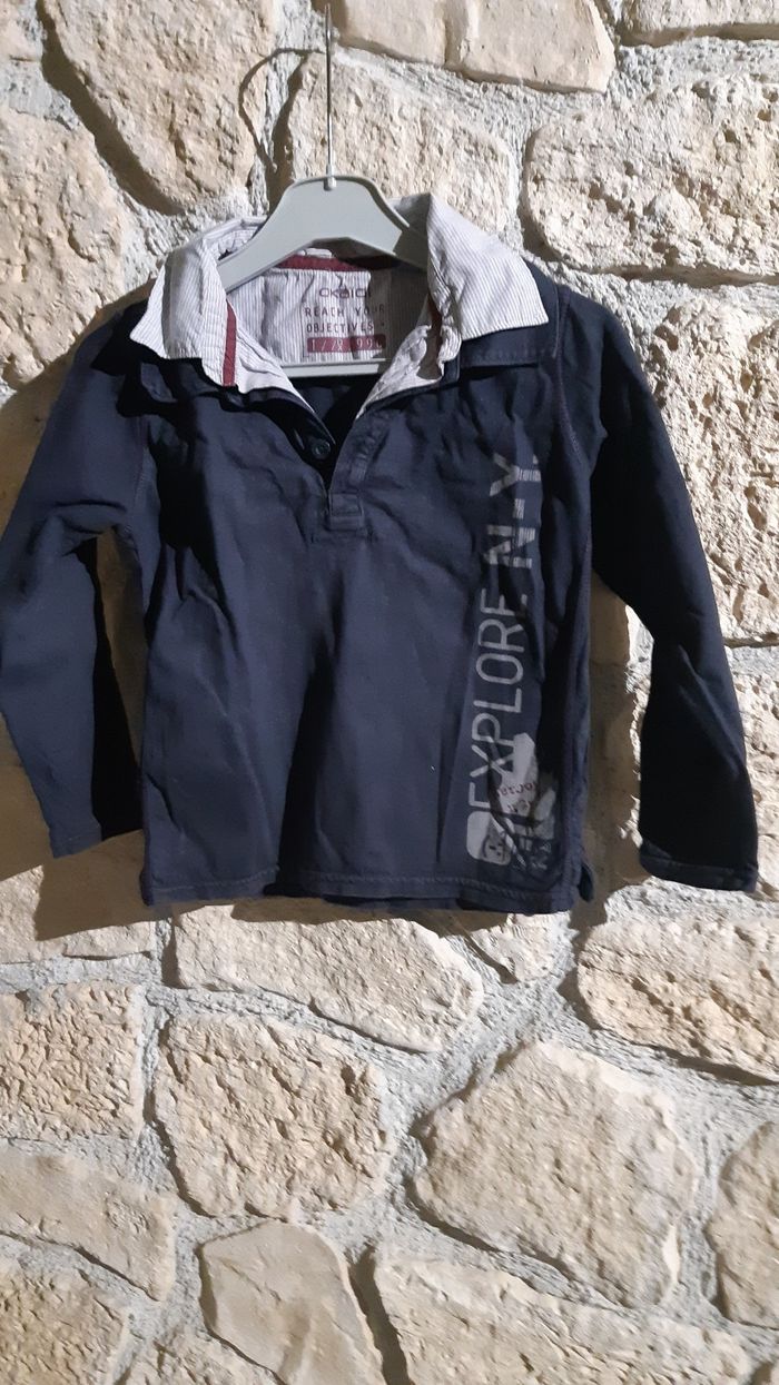 en coton, double col chemise donné l'impression de porter la chemise dessous. 5 ans, 108 cm