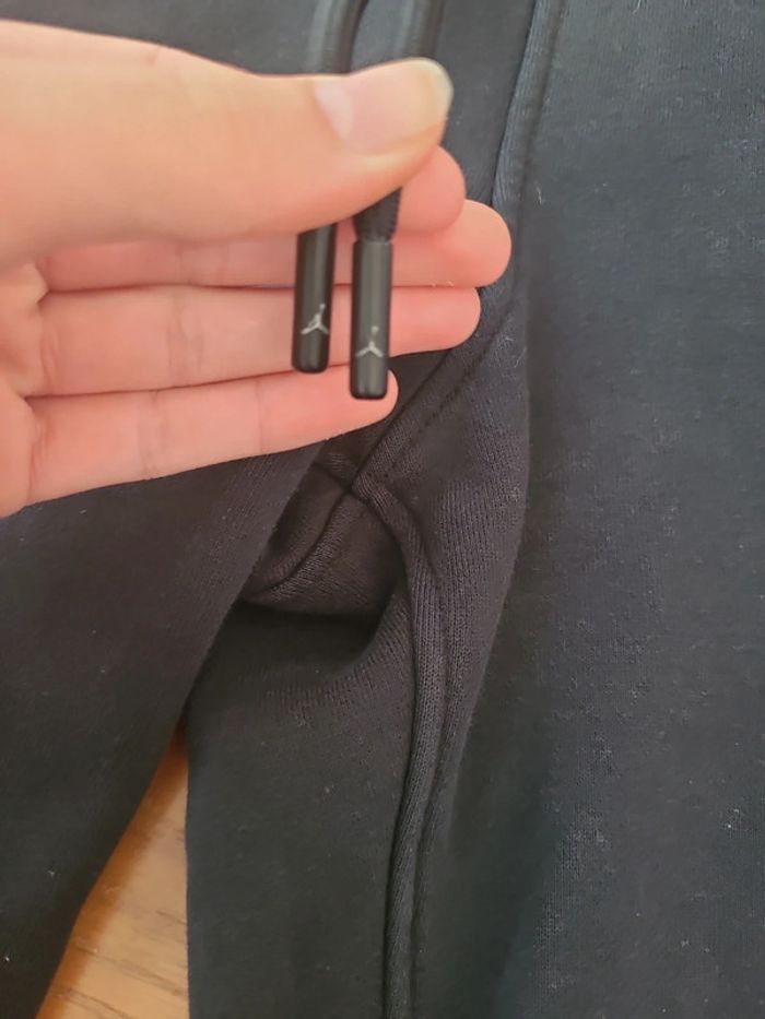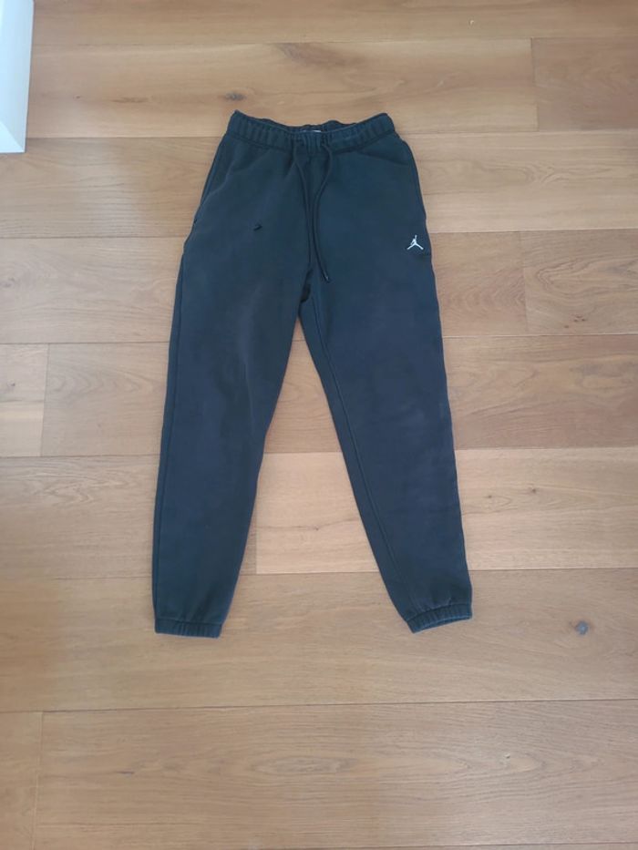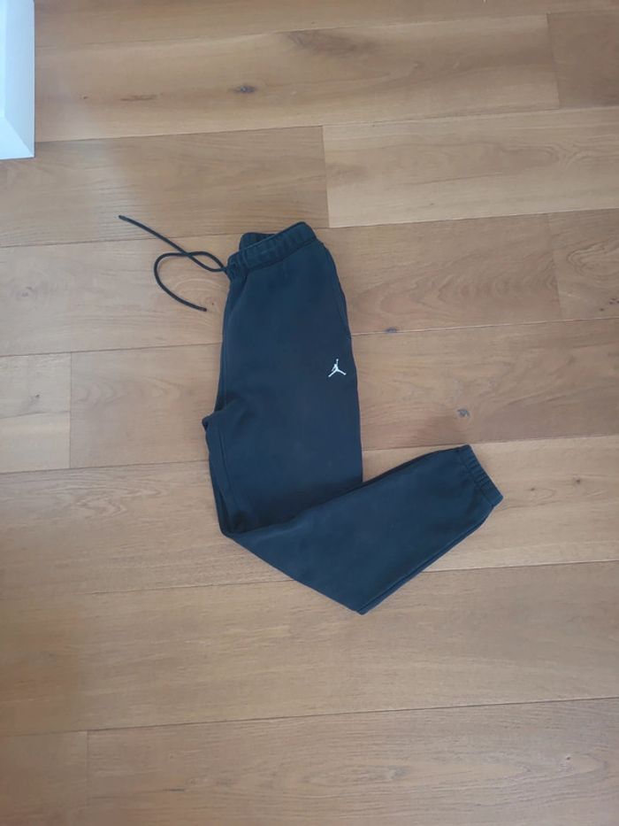 Jogging Jordan taille S il y a un petit trou voir photo si vous avez des questions n'hésitez pas à m'envoyer un message le prix est négociable dans la limite du raisonnable état satisfaisant si vous voulez l'ensemble je vous le fais à 75 car j'ai le haut