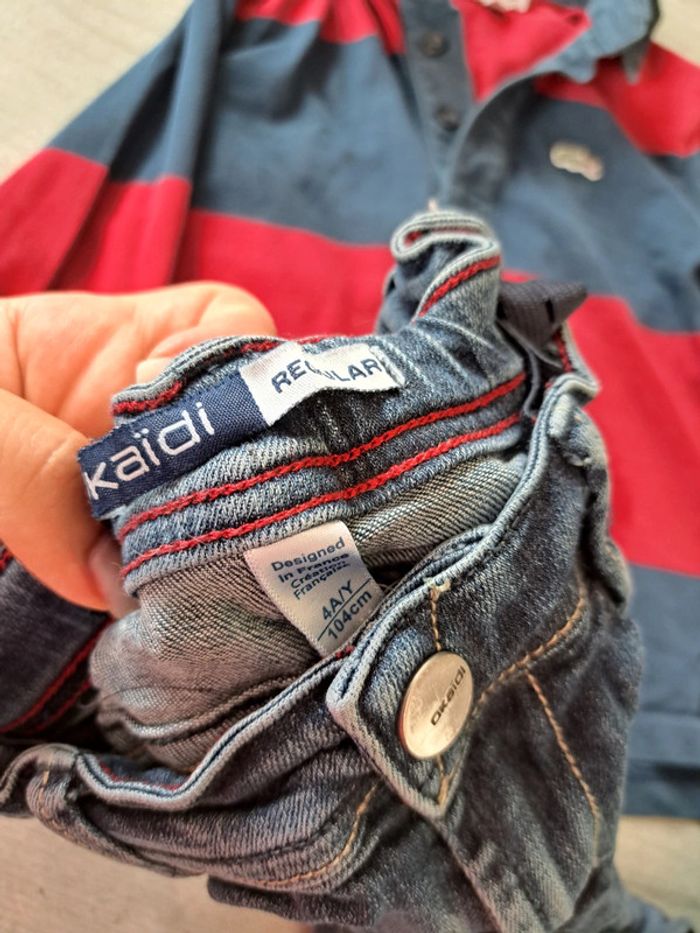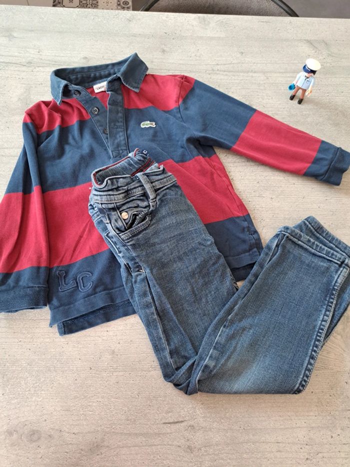 Ensemble garçon, polo ML Lacoste + Jeans Okaidi en très bon état, taille 4 ans